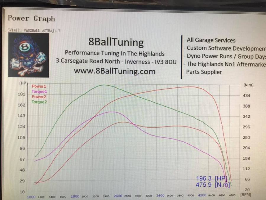 This astra is listed as 110bhp version on the logbook, but after running it on the dyno and pulling the software from it, this had the 130bhp version software fitted.