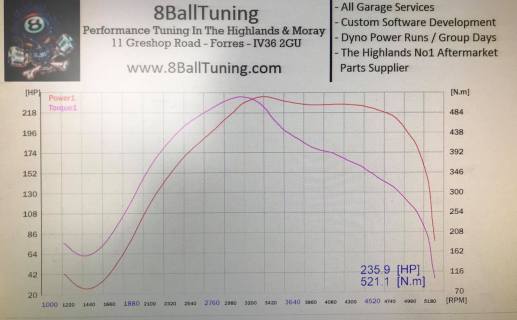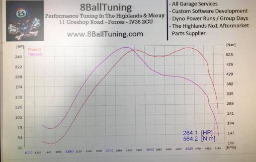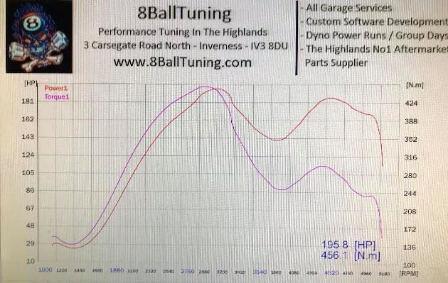 just 195bhp 456nm, as you can see from the original graph, it struggled.