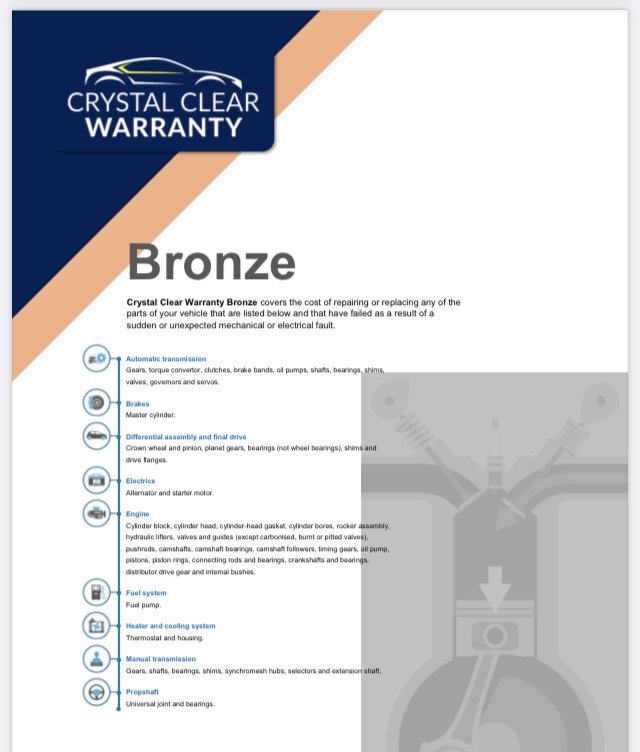 For your added peace of mind, we have teamed up with Crystal Clear Warranty to enable our customers to have an extended warranty on their vehicles parts